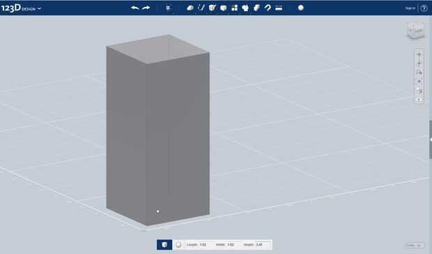 1. Agregue un cubo con las dimensiones: longitud 1.52 1.52 de ancho, altura 3,45.