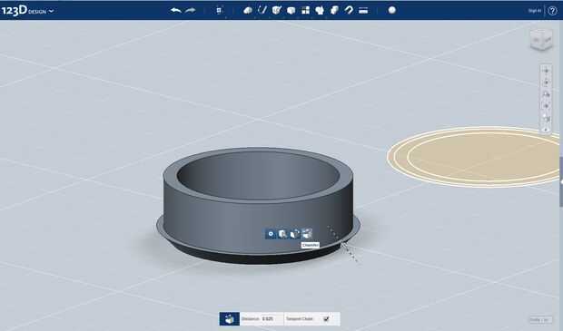 21. Seleccione el Borde exterior inferior de este anillo y el chaflán por 025.