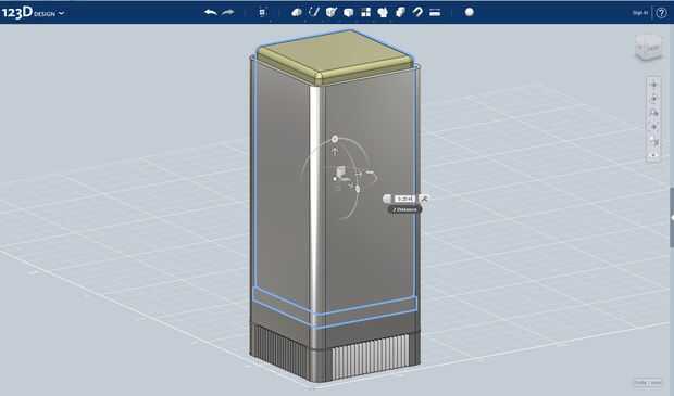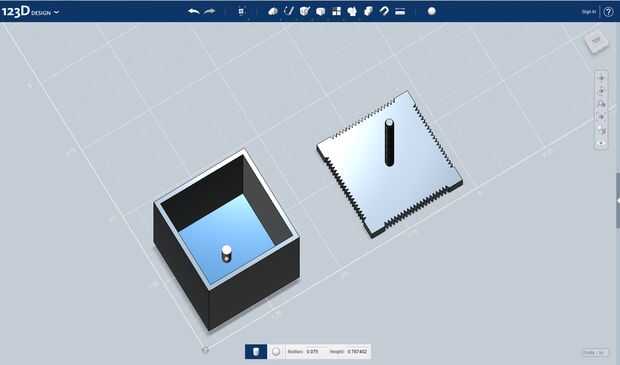 1. Añadir un cilindro con un radio de.075 pulgadas a la mitad de la Cara interior de la cáscara como se muestra.