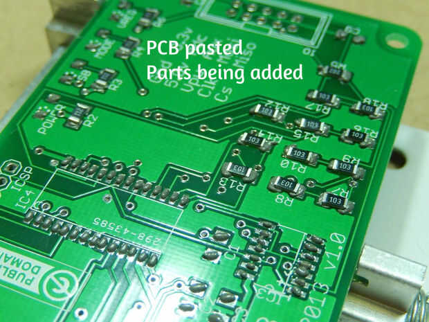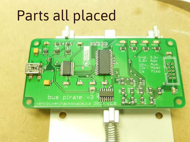 Un ejemplo es el Bus Pirate. Un miembro de mi espacio de la máquina local (VHS) armar un kit de Bus Pirate y es en su mayoría piezas de SMD. En las fotos se puede ver que utilicé un dispensador de pasta de soldadura (este era el mismo miembro traído de China) para pegar encima de la Junta. Entonces simplemente cayó en las piezas y cocido en el horno de reflujo que había hecho antes. Mientras que este tablero no es excesivamente complicado, conseguiría muy agotador pegando todo a mano. La soldadura pasta dispensador hace una brisa y usted puede conseguir un PCB pegado para arriba y las piezas cayeron en y cocido al horno en ningún momento a todos.