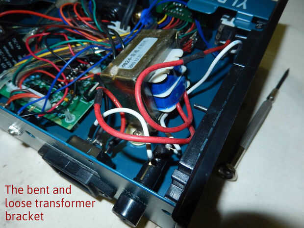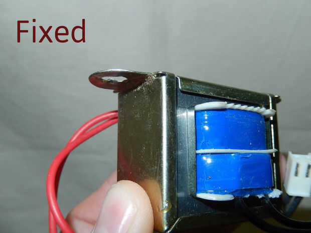 - El transformador de 220V original había sido reemplazado con un 110V uno busca pero nunca se han apretado correctamente. Era flojo y sus bridas de montaje estaban realmente decididos. Eso explica el ruido clunking.