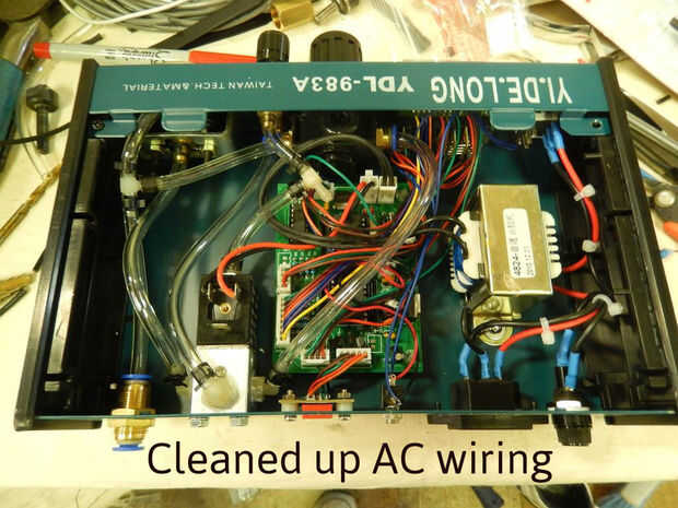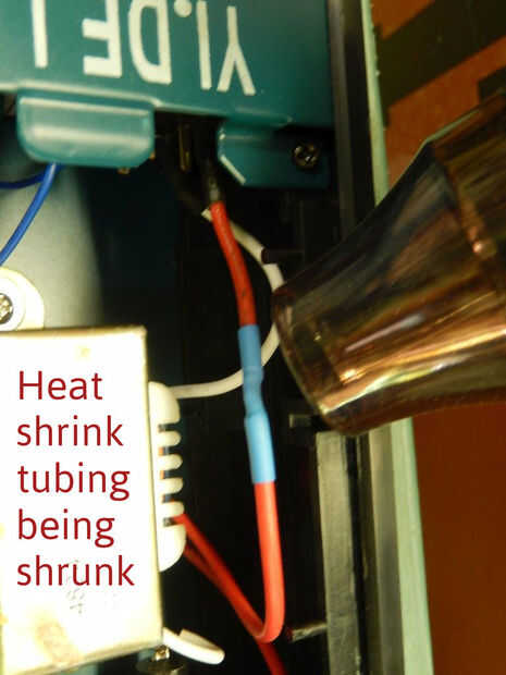 - Reemplazar todo el cableado de 120 v conectar el enchufe, fusible, interruptor y transformador. Las conexiones también fueron cubiertas en tubería termocontraíble. Nota el termocontraíble fotos muestran mi la reutilización de algunos de los cables originales. Poco después, partió y que me llevan a volver a cablear todo. Mejor seguro que lo sentimos...