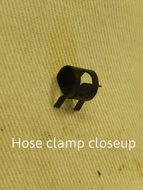 Las conexiones de manguera no parecía demasiado fuertes pero no estaba segura del mejor tipo de abrazadera para usar. Pensé de lazos de alambre pequeño pero ya que estas no envuelven en un círculo completo hubo una posibilidad de fuga. Mientras que me metía a las partes para la conexión de aire comprimido encontré algunas abrazaderas pequeñas. Éstos son 1/4" y realmente no encajan tan bien como me hubiera gustado pero son mejores que nada. Pensé que esto le daría una protección extra contra una manguera suelta. Eran un poco caros ($1,37 para dos) en la tienda de hardware de la caja grande. Usted puede probablemente encontrar mucho más barato en una tienda o una tienda de partes de aparato.