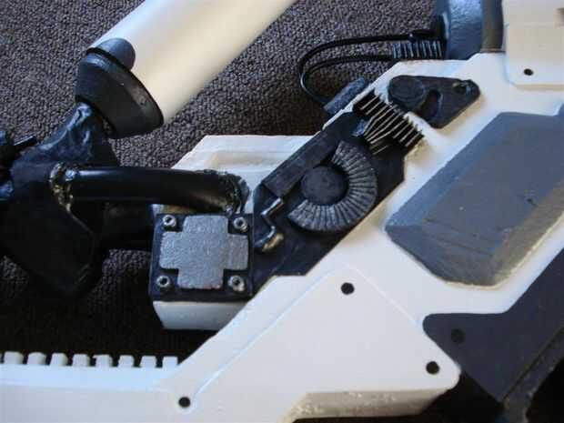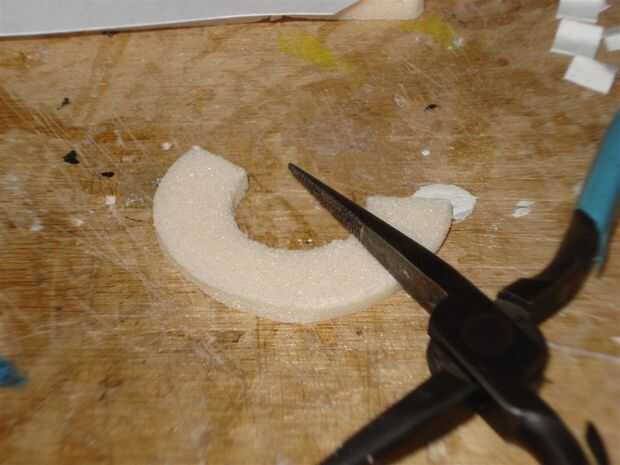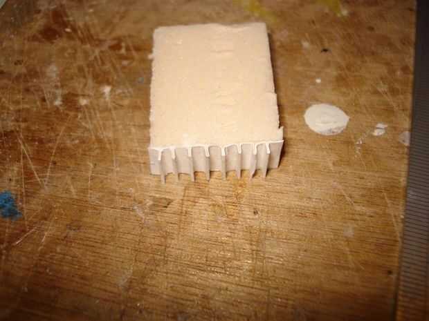 El disipador de calor en la parte superior del arma, cerca de la célula de energía era otro bloque de espuma de color de rosa. Las aletas del disipador de calor hicieron doblando un trozo de cartón y pegado en el borde del bloque.