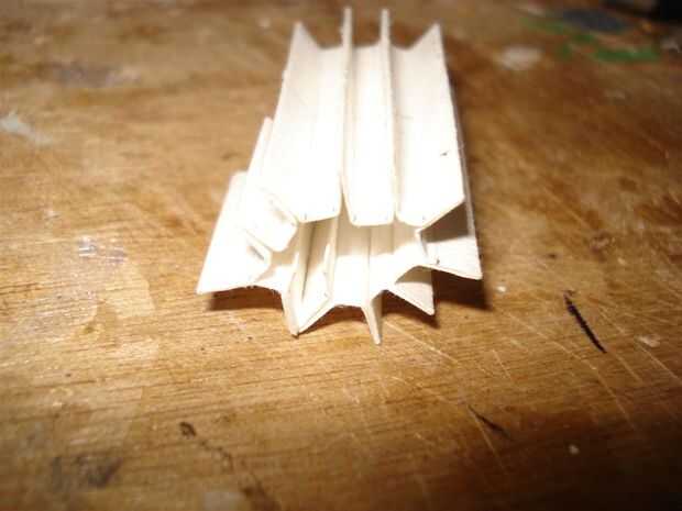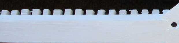 La sierra dientes en la parte superior del cañón se hacen de madera de balsa, (como la cerca muestra cómo áspero lo son tal vez sería mejor hacer de espuma), la forma que se sientan en fue hecho de cartulina con un centro de espuma para su solidez.