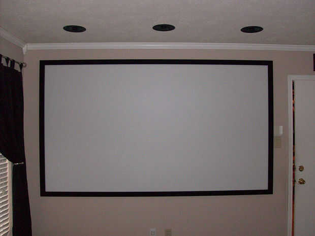 Para el proyector, usted necesitará un cable HDMI y un cable de control CAT 5 que se conecte el proyector a proporcionar una alimentación de vídeo de alta definición y el control remoto. Usted puede comprar una pantalla de proyección desplegable, o simplemente puede utilizar pintura de la pantalla de proyección (disponible en la mayoría de las ferreterías) y pintar una pantalla sobre cualquier pared. Para finalizar el trabajo, enmarcando el área de pantalla pintada con un borde negro.