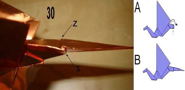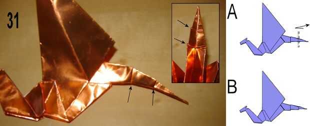 Puede ajustar los ángulos ligeramente en estos pliegues para que cambia la dirección de la cola, si apunta hacia abajo (como muestra), hacia arriba o hacia.