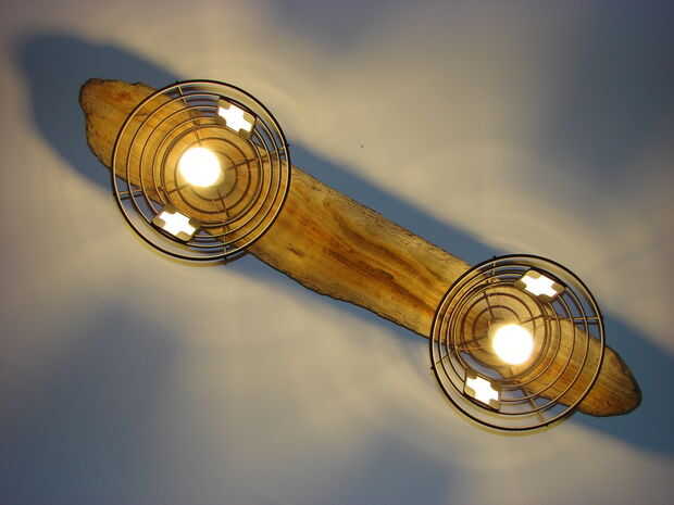 Nuestro bach (casa de playa modesta) necesitaba nuevas luminarias y no pudimos encontrar nada en las tiendas que adapta su elegancia única o nuestra belleza financiera única. No queremos comprar las luminarias que vimos como estaban sorprendentemente caros, sobre todo porque no eran realmente lo que queríamos de todas formas. Así que armados con accesorios de lámpara, driftwood y algunos Fruteros de $3, estábamos listos para aceptar algo diferente.