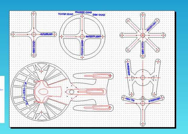 Ahora tuve que diseñar los agujeros para el montaje del controlador de vuelo, fue difícil porque otra vez no tenía las medidas de control en el tiempo, así que hice un diseño genérico que admite un montón de puntos de montaje.