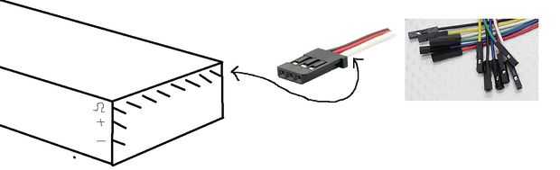 Enchufe un extremo de un conector de servo en cada uno de los pasadores de ohmios, si tienes la versión de 3 alambres entonces basta con conectar uno en cada 3 pernos asegurándose de que el cable blanco va al pin ohmios.