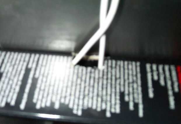 Una vez más, utilice un cuchillo del exacto para cortar un agujero en la parte posterior de la caja, un poco más grande que el cable USB, y gallina pone dos cables a través de él.