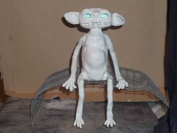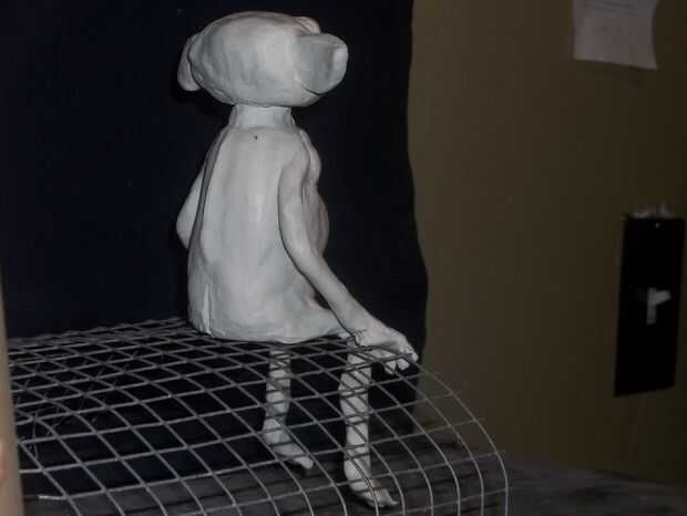usé papel de aluminio para hacer una forma para el cuerpo, agregamos una capa de arcilla alrededor de la misma forma. Luego las piernas, los brazos y una cabeza. Al hacer la cabeza, empujó los mármoles hacer "ojos", luego en forma el resto de la cara, añadiendo orejas y aún una lengua! Para sujetar la cabeza, no utilizar nada, sólo moldeado la cabeza en el cuerpo.