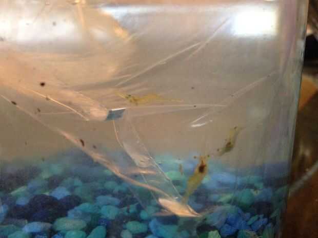 Esto permite que la temperatura en la bolsa para igualar la temperatura del agua en la jarra, minimizar el estrés en los camarones con un cambio repentino de temperatura.
