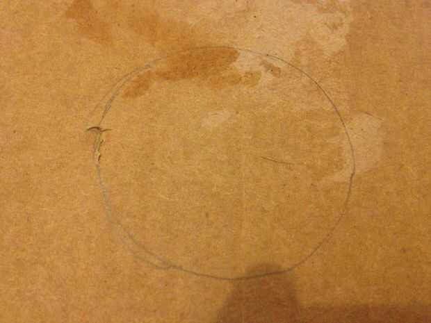 ahora la cardboard.unscrew la tapa de la ar de vidrio si y entonces puso su apertura sobre la marca de lápiz de cardboard.using con unas tijeras corta el contorno de la abertura de la jar.now.