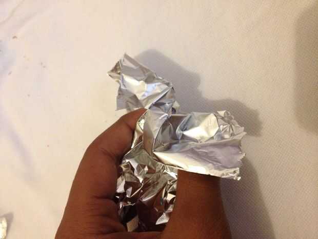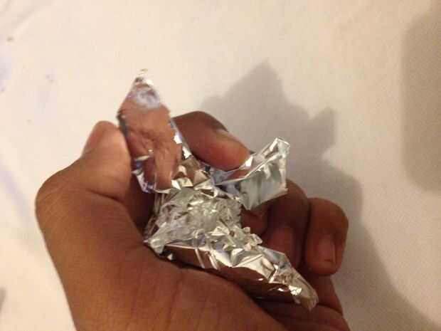 ahora toma el resto de aluminio y se desmoronan y scrumble en una bonita forma redonda.