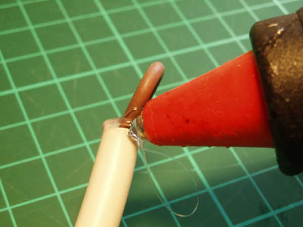 Caliente con pegamento del derretimiento, llenar las aberturas de la cuerda. Hacer un borde pequeño usando pegamento caliente del derretimiento.