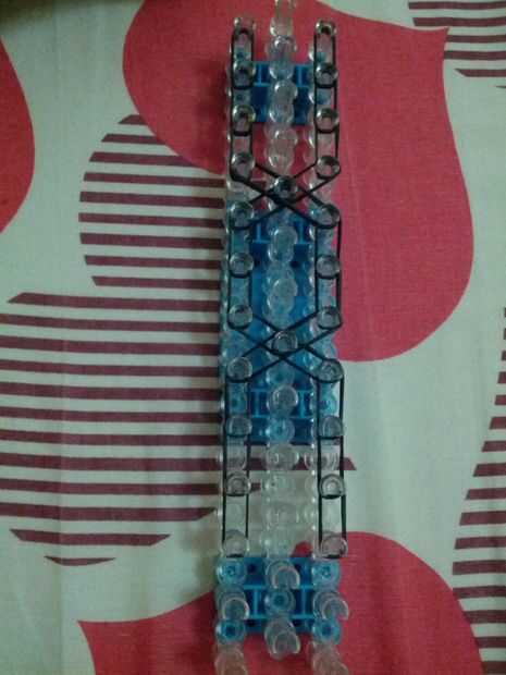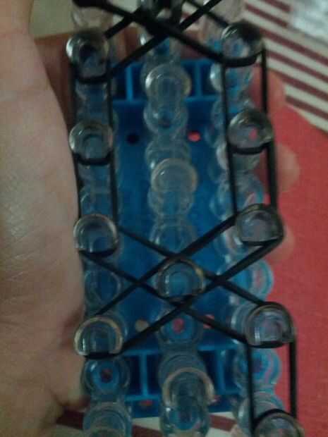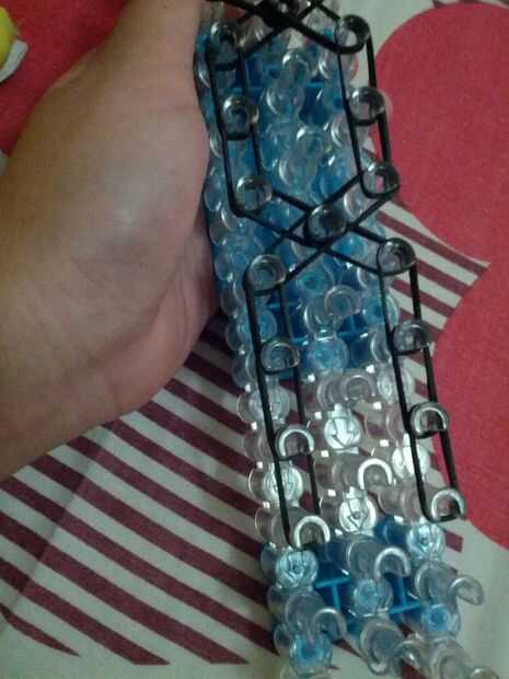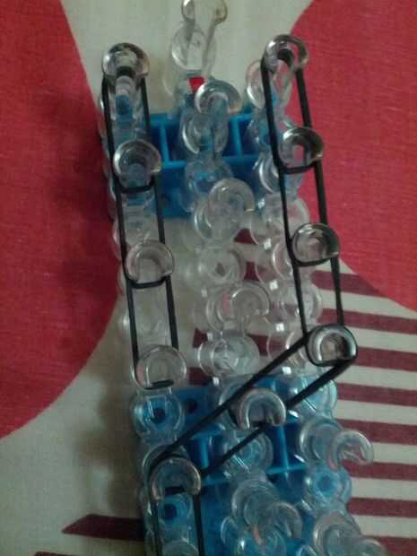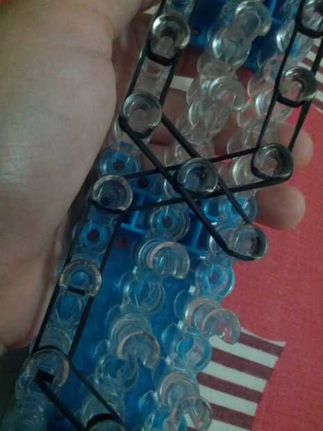 Paso 1: Lo que se necesita. 1 telar.1 gancho.bandas de goma blancas 41.44 bandas de goma azul.Paso 2: Poner en las bandas de goma azul. Puesto encendido como se muestra en las fotosPaso 3: Poner en las bandas de goma blanca. Puesto encendido como se
