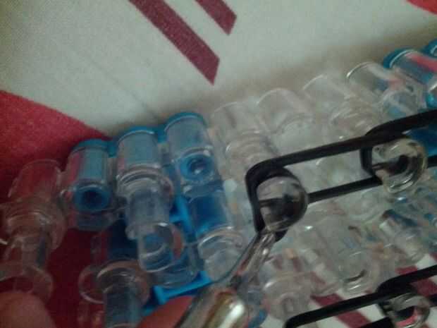 Paso 1: Lo que se necesita. 1 telar.1 gancho.bandas de goma blancas 41.44 bandas de goma azul.Paso 2: Poner en las bandas de goma azul. Puesto encendido como se muestra en las fotosPaso 3: Poner en las bandas de goma blanca. Puesto encendido como se