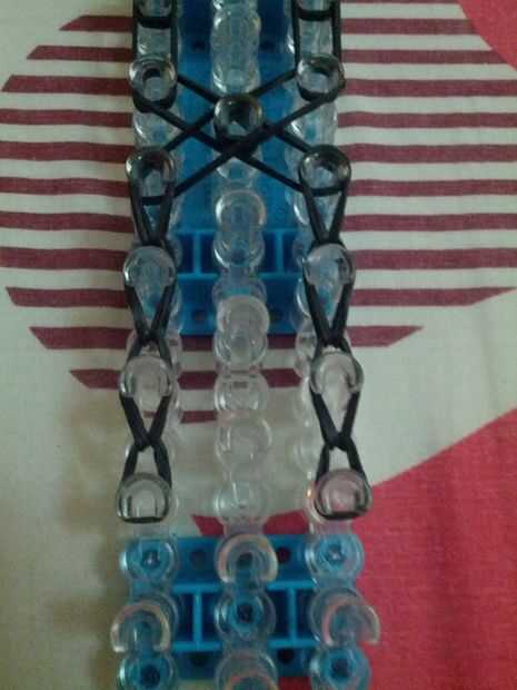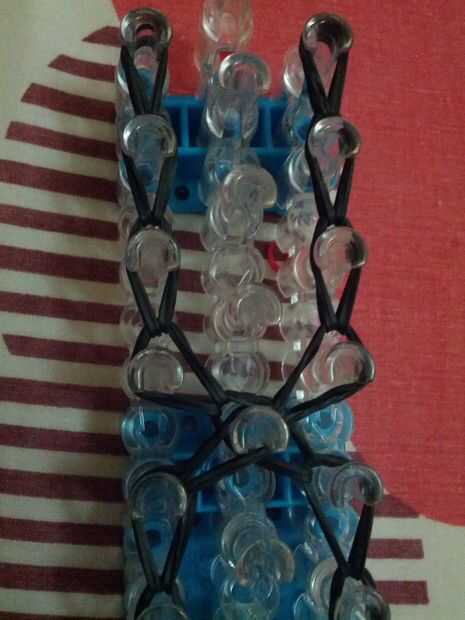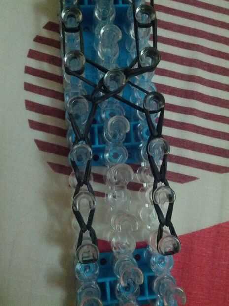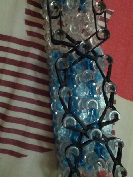 Paso 1: Lo que se necesita. 1 telar.1 gancho.bandas de goma blancas 41.44 bandas de goma azul.Paso 2: Poner en las bandas de goma azul. Puesto encendido como se muestra en las fotosPaso 3: Poner en las bandas de goma blanca. Puesto encendido como se