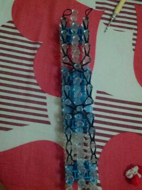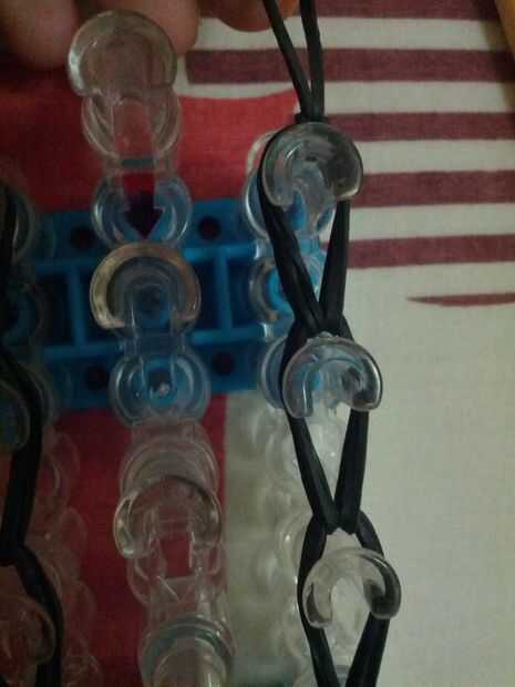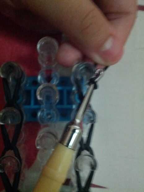 Paso 1: Lo que se necesita. 1 telar.1 gancho.bandas de goma blancas 41.44 bandas de goma azul.Paso 2: Poner en las bandas de goma azul. Puesto encendido como se muestra en las fotosPaso 3: Poner en las bandas de goma blanca. Puesto encendido como se