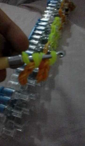 espero que todos disfruten mi primer instructables! Por favor dejar comentarios, preguntar y sugerir!Paso 1: fuentes de Usted necesita lo siguiente:· Telar del arco iris· Gancho· Bandas de gomaPaso 2: Colocar las gomas Empezar desde la parte inferior