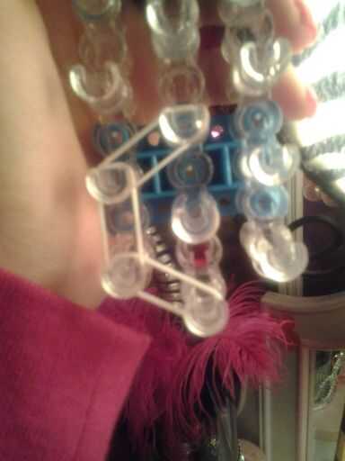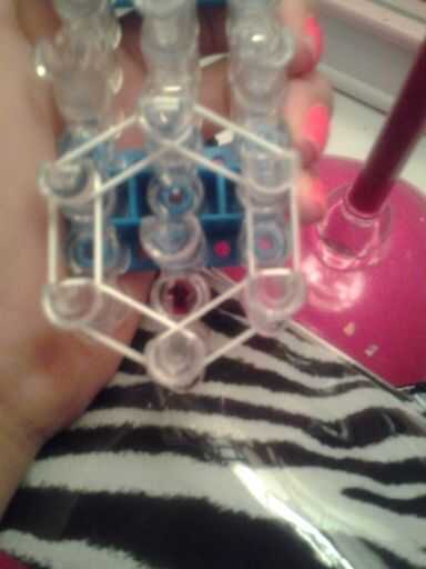 necesita: bandas de un telar del arco iris, un gancho y blanco y negro.Paso 1: Colocación de las bandas Lugar sus bandas en un principio como el triple solo paren en la clavija 4 y mover la banda hacia la derecha y luego haces una línea recta en el c