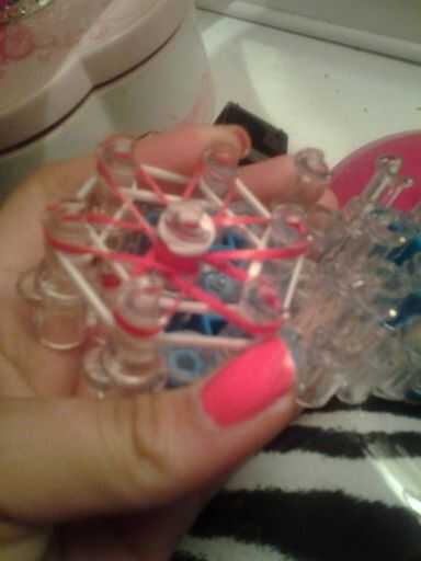 este pulimento de clavo es lindo y divertido que hacer! Por favor dejar comentarios, preguntar y sugerir. ¡Que te diviertas!Paso 1: Lo que usted necesita Usted necesita lo siguiente:· Telar del arco iris· Gancho·2 goma diferentes colores (uno para la