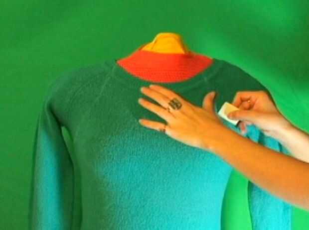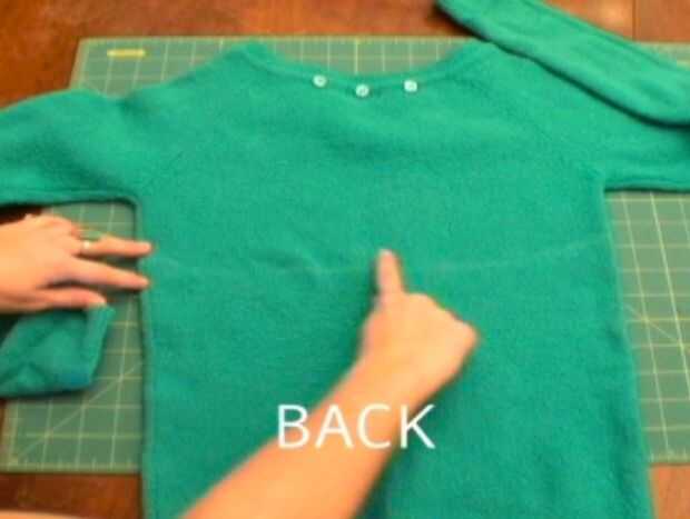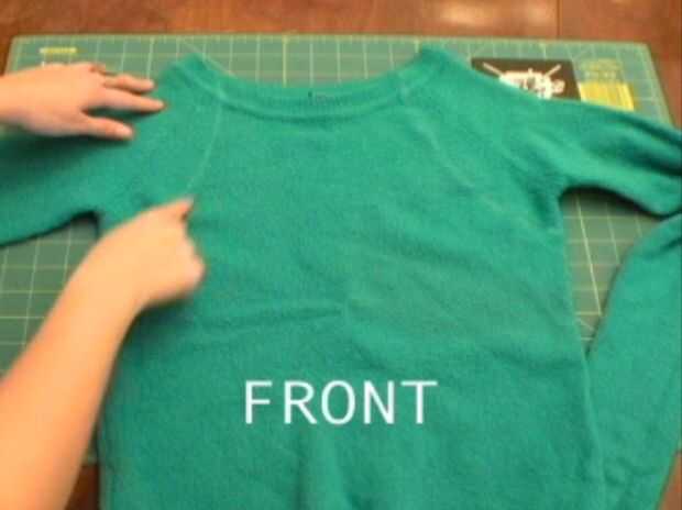 Probar el suéter para tener una idea de donde usted necesita hacer sus marcas. Que saquen algunos tiza y dibujar algunas líneas a partir de la parte frontal superior del cuello y va todo el camino alrededor de la parte posterior.