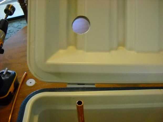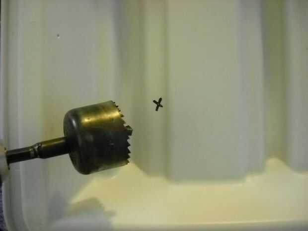 Me bajó la tapa y marcados donde saldría la entrada de la tapa. Luego tomó un serrucho y cortar un agujero. Las cuatro pulgadas de la tubería debe quedar fuera de la tapa un poco cerrada.