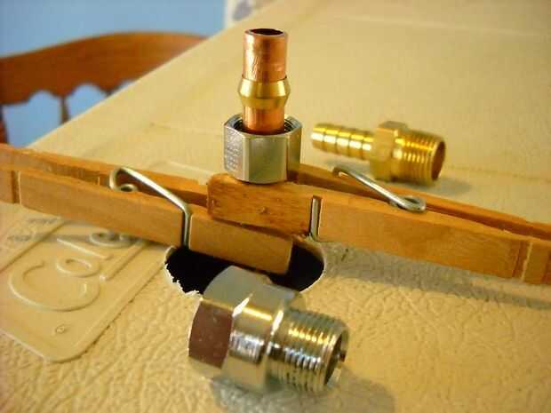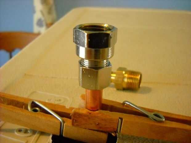 Apriete la tuerca y el anillo en el racor de compresión y poner en el adaptador de lengüeta de la manguera.