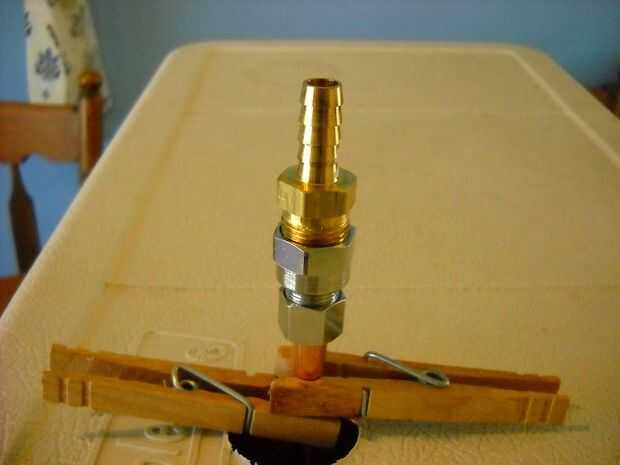Esto es donde el mosto entra el enfriador de vía tubería clara que se deslice sobre la púa.