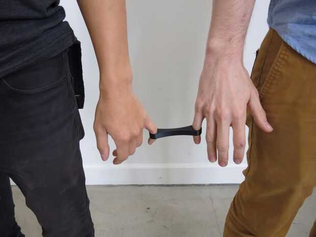 Enlazadores de Pinky son dispositivos físicos que permiten a dos personas que podrían no conocerse muy bien para experimentar un vínculo físico. Están personalizados para reflejar tanto el tamaño del meñique de cada individuo, así como cerca cada persona se siente a la otra.