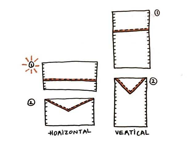 Elegir la dirección en que desea que su envolvente para abrir: horizontal o vertical. En este instructable he elegido para presentación horizontal n ° 1.