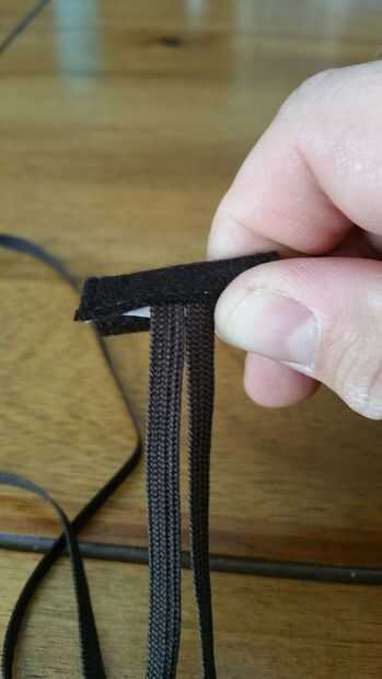 Firmemente el cuerpo laminado del escapulario y permitir que las dos cadenas colgando (cuadro 1). Para envolver el Escapulario (2ª foto), usted puede comenzar en cualquier lado. Decidí empezar a la derecha y así las instrucciones de seguir su ejemplo. (Esta es la parte difícil) Permiten la picadura colgando y abrigo debajo y detrás del rollo de fieltro. Seguir envolver la cuerda alrededor de su dedo, otra vez la cadena debe pasar primero bajo, luego detrás de los dedos, antes de entrar en la parte superior de su dedo. siguiendo el mismo camino, envuelva una segunda vez en el dedo. Es importante que la cadena no esté retorcida como envuelve alrededor de su dedo (la cadena se torció, más abajo de la longitud de la cadena, no sólo donde se envuelve alrededor de su dedo, esto es aceptable.) También asegúrese de que la cadena se envuelve de derecha a izquierda. La segunda envoltura alrededor del dedo que es a la izquierda de la primera envoltura. Diapositiva ahora las envolturas se los dedos sobre el cuerpo laminado de escapulario (cuadro 3). Tenga en cuenta que el extremo suelto de la cuerda funciona debajo de él es donde se une al cuadro laminado. Apriete las envolturas lo suficiente que permanecerán sin resbalarse o caerse (cuadro 4).