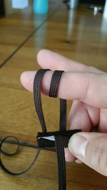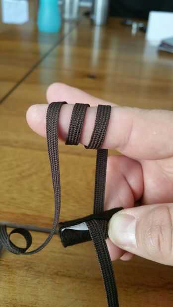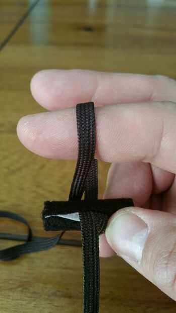 Para más opciones de tamaño, puede hacer tamaño medio. Es decir, por ejemplo, usted podría hacer, tres vueltas a la izquierda y dos vueltas a la derecha. Voltee el escapulario y la repetición, tres a la izquierda y dos a la derecha. Esto sería tamaño justo entre un escapulario con doble envoltura en cada extremo y uno con tres vueltas en cada extremo. Una salvedad a este tamaño medio resultará en un solo giro a cada lado del escapulario.
