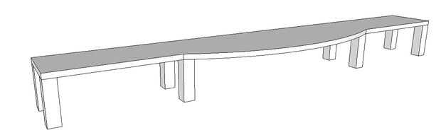 Tome su 12 "x 70" pedazo de. 75" madera contrachapada y hacer un corte 17,5" en la longitud de la pieza en un ancho de 8". Los extremos de esta pieza será rectangulares, 8" de ancho. Haga el mismo 17,5" en el otro extremo. Cortar el exceso de esta pieza, para que tenga una pieza con forma de tetris: un rectángulo amplio de 8" en ambos extremos que da paso a una 12" ancho cuadrado, 35" de largo en el medio. Este debe ser esencialmente la misma forma que la plataforma redondeada, no redondeada todavía.