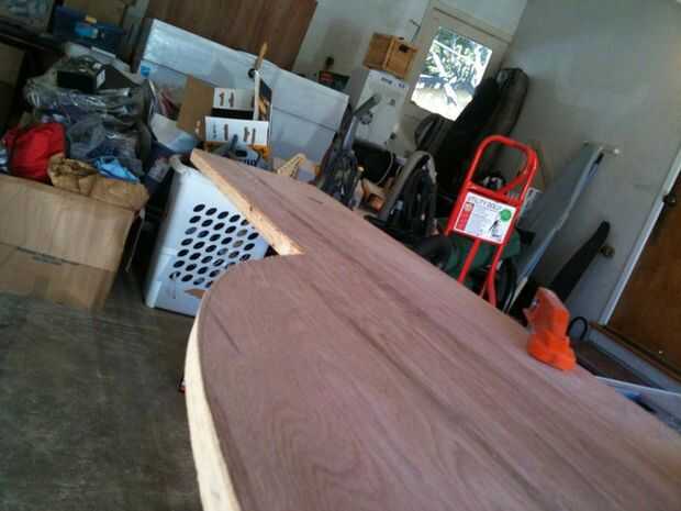 Le recomiendo trazar el arco antes de hacer su corte. Más exactamente se puede dibujar el arco, mejor. He intentado utilizar una brújula inicialmente, pero encontrado que este diseño no era un círculo perfecto y también tenía un radio mucho más grande que la brújula que compré. En su lugar dibujó mano más o menos un par de veces hasta que tuve una buena forma. Lo realmente practicado primero en un trozo similar de madera. Primero esta cortando y formando a un tamaño determinado y simetría que tenía una buena plantilla para trazar en la plataforma real: tipo de como una plantilla.