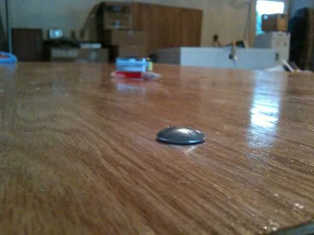 Para dar a la mesa un aspecto acabado, usted querrá aplicar una bandas de chapa en los bordes expuestos de madera contrachapada. Toda la madera empleada es roble, para que funcione bien una variedad de roble de las bandas. Personalmente, aplicado sólo a la mesa y la plataforma: las dos piezas más visibles. También puede considerar aplicar a cualquier otros bordes de madera expuesta, para ocultar el feas capas expuestas de la madera contrachapada del corte. El siguiente vídeo de youtube es una buena explicación de cómo aplicar las bandas. Es bastante simple: las bandas haya secado el pegamento en un extremo, cinta así o todo lo contrario establece las bandas en lugar y aplique calor a la porción de chapa de madera, y el pegamento detrás de él se derretirá: adherirse muy bien a los bordes. Corte el exceso con un cuchillo del exacto o una herramienta de bordes.