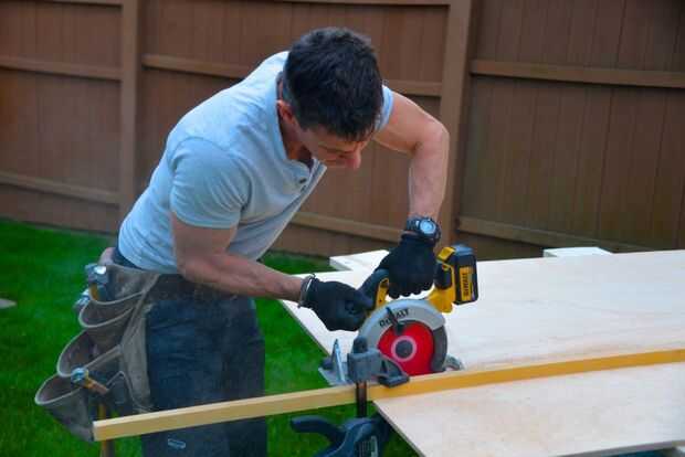 Coloque el lado bueno hacia abajo y utilizar a una guía de borde recto para obtener un corte limpio y recto.