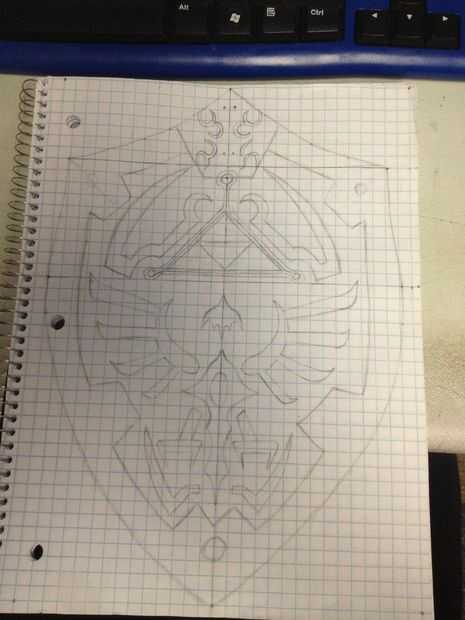 * Nota: Como se puede ver en el dibujo y el producto terminado, no hacer la pieza de la caja alrededor de la Trifuerza ni agregar los detalles en el Pentágono en la parte superior. Va a hacer un segundo escudo, y que le daré una idea de cómo hacerlo. O si te sientes creativo, pruébalo tú mismo!