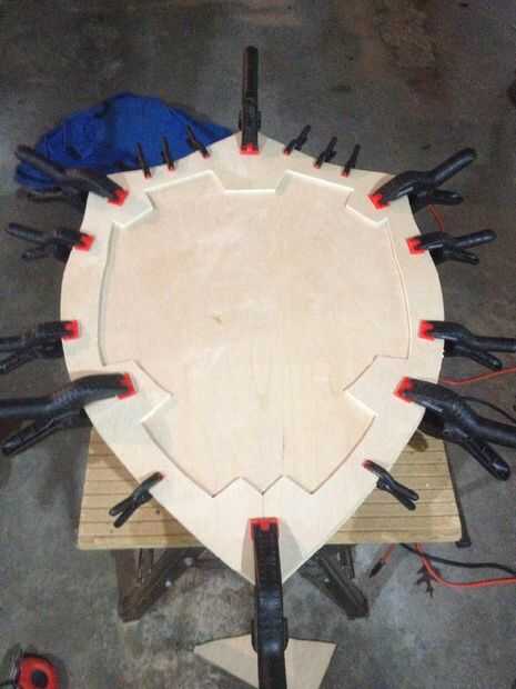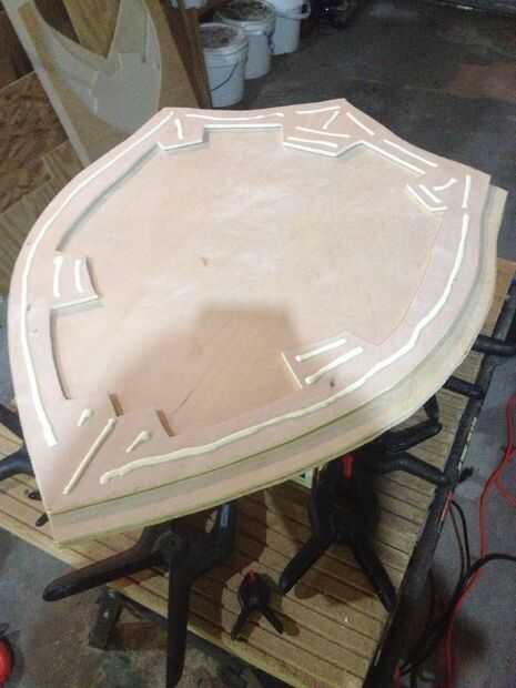 cuando lucha contra Ganon, un verdadero héroe necesita un escudo...Materiales:-2 tableros de madera-Sculpy arcilla-Pintura en aerosol-Herramientas (Sierra, Dremel, taladro)Paso 1: Base y estructura La Base del escudo hyliano está hecha de dos partes,