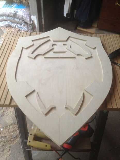 cuando lucha contra Ganon, un verdadero héroe necesita un escudo...Materiales:-2 tableros de madera-Sculpy arcilla-Pintura en aerosol-Herramientas (Sierra, Dremel, taladro)Paso 1: Base y estructura La Base del escudo hyliano está hecha de dos partes,