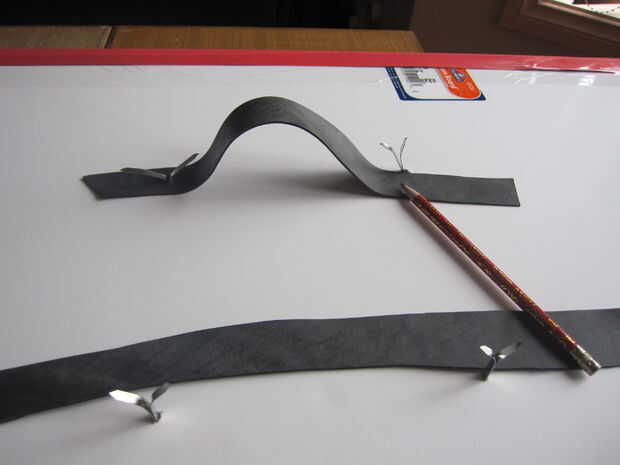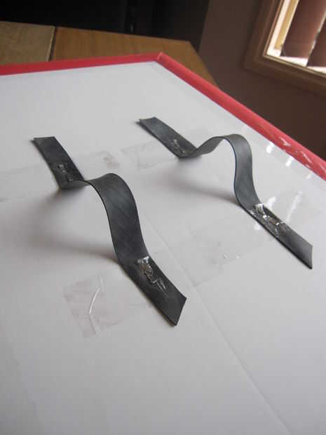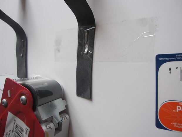 3. tomar el material para las correas del escudo y mida la distancia entre los pernos de fractura superior y las inferior clavijas.