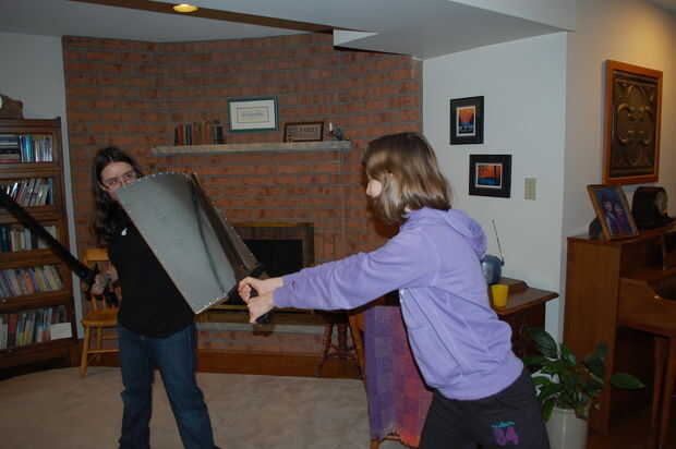 mis hijos aman representando su propia versión de famosas batallas después de juegos de estrategia en el PC. Entonces me preguntan para que sean equipos o armas para ir con ellos.Así que hice este escudo romano. Me tomó un par de noches para hacerlo