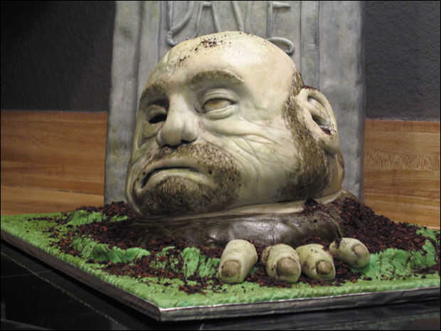 El paso final es añadir en su "suciedad" de tierra encima de alfajores de chocolate y jengibre se encaja a presión. Lleno en el área de la cresta, con derrame un poco para el efecto, acumulando algunos alrededor de sus dedos e incluso poner algunas y encima de las orejas y parte superior de su cabeza.