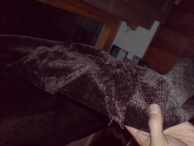 Coloque la máquina a una puntada de zig-zag sueltos y coser todo alrededor de los bordes abiertos del material tejido de 30mm en. Esto evitará que el material se deshilachen demasiado. Coser los trozos de chatarra bastante grande de su material en lugares al azar para dar el efecto de un trabajo de reparación de mala calidad. Sólo apriete en los bordes de material a fray que y termine con la chaqueta!