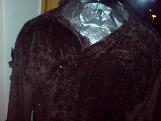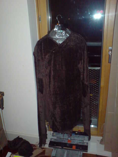 El Espantapájaros lleva un cardigan aproximadamente corte de clases que he hecho de un tejido acrílico tiro de TK Maxx (o TJ Maxx), el tiro cuesta £11 y ser tejido será también fray maravillosamente. No hay fotos de la construcción de esta sección tengo miedo pero es muy simple. A hacer un diseño de camiseta muy áspero que incluye: