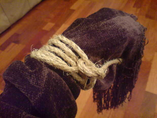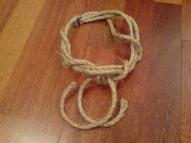 Cortar cuatro tiras de la cuerda de sisal 10mm original que se utilizará para atar alrededor de las muñecas y los tobillos. Hacer las longitudes suficientemente largo para envolver alrededor de al menos tres veces y ate.