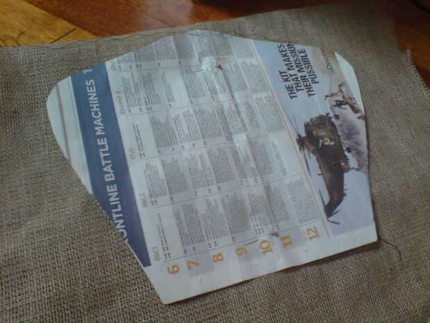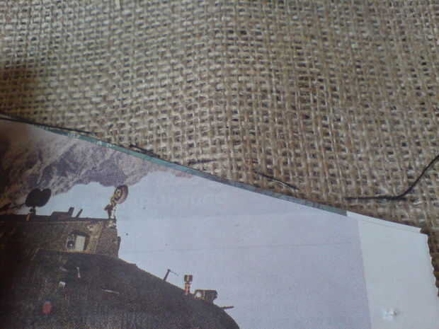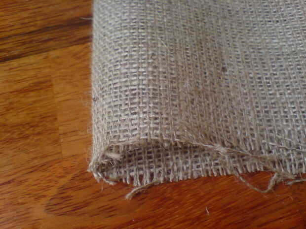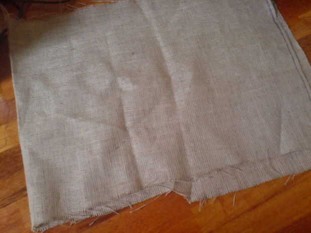 La cabeza o máscara del espantapájaros es un saco de arpillera estilizado. Empecé con 0,5 m x 1,4 m de material áspero del Hessian de una tienda de tela. Se vende para uso debajo de sillas y sofás como un material barato y resistente cubierta. Si usted puede encontrar un saco de arpillera, trabajar así. Asegúrese de que está sin forro y bastante gruesa de tejido por lo que todavía se puede ver a través de él. Doblar por la mitad por lo que es 0,5 x 0,7 m. El patrón se ejecutará con el tejido de la tela como en ángulo (en diagonal) que haría normalmente con telas tejidas, pero quiero el material a fray pesadamente.