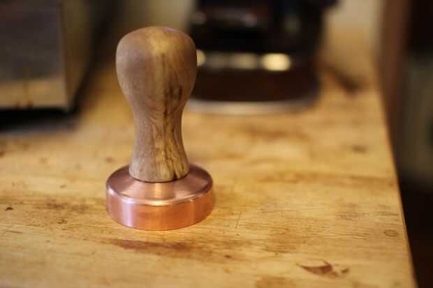 Techshop. Una brillante nueva 58,4 mm espresso manipular! Empecé con una 2,5 "x 12" cobre alrededor de la barra y una comprensión básica de cómo usar un torno de metal y un molino vertical. Resulta que, haciendo sólo una cosa redonda en una cosa redonda más pequeña no es difícil.